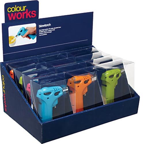We just love this funky little Kitchen Craft blowtorch - which will make creme brulees to be proud of. It has a piezo trigger ignition, a refillable cylinder (supplied empty) and safety adjustable anti-flare flame which works at all angles. The 15cc refillable cylinder uses butane gas.Colours may vary - if you would like a specific colour then please do drop us an email.