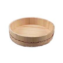Sushi Oke is a large flat bottomed wooden mixing tub. It is traditionally used when making sushi rice. It is important to use a non-metallic container because this prevents any interaction between the rice vinegar which will be added to the rice and any metallic material. The wood also serves to absorb excess moisture from the cooked rice and the large mixing surface allows the hot rice to cool rapidly. 12 inches diameter, 3 inches deep